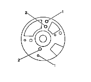 11. Align the rotor segment as shown for a V6 engine (1) or V8 engine (2).