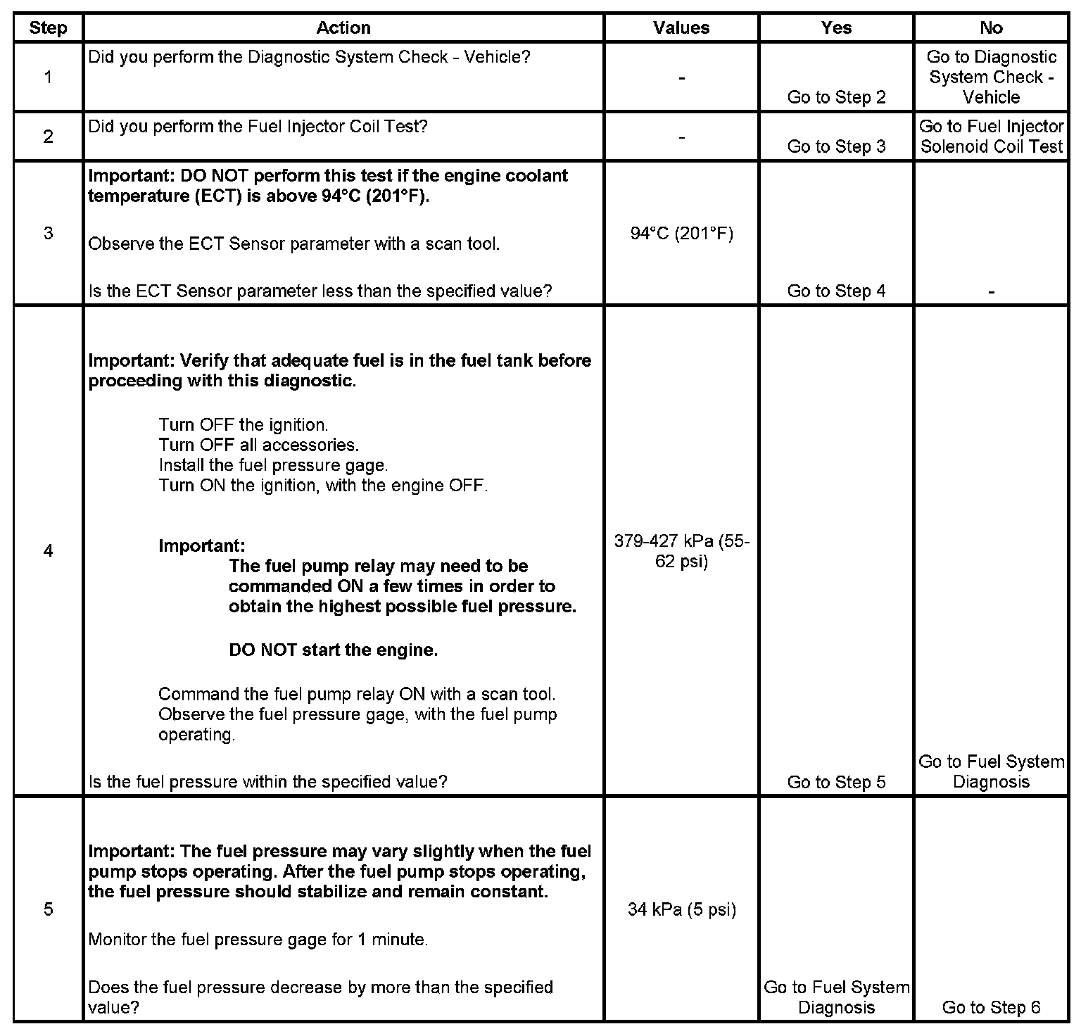 3. The engine coolant temperature (ECT) must be below the operating temperature in order to avoid irregular fuel pressure readings due to hot soak fuel boiling.
