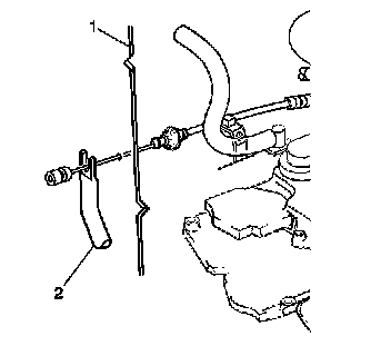 1. Install the accelerator cable to the bulkhead (1).
