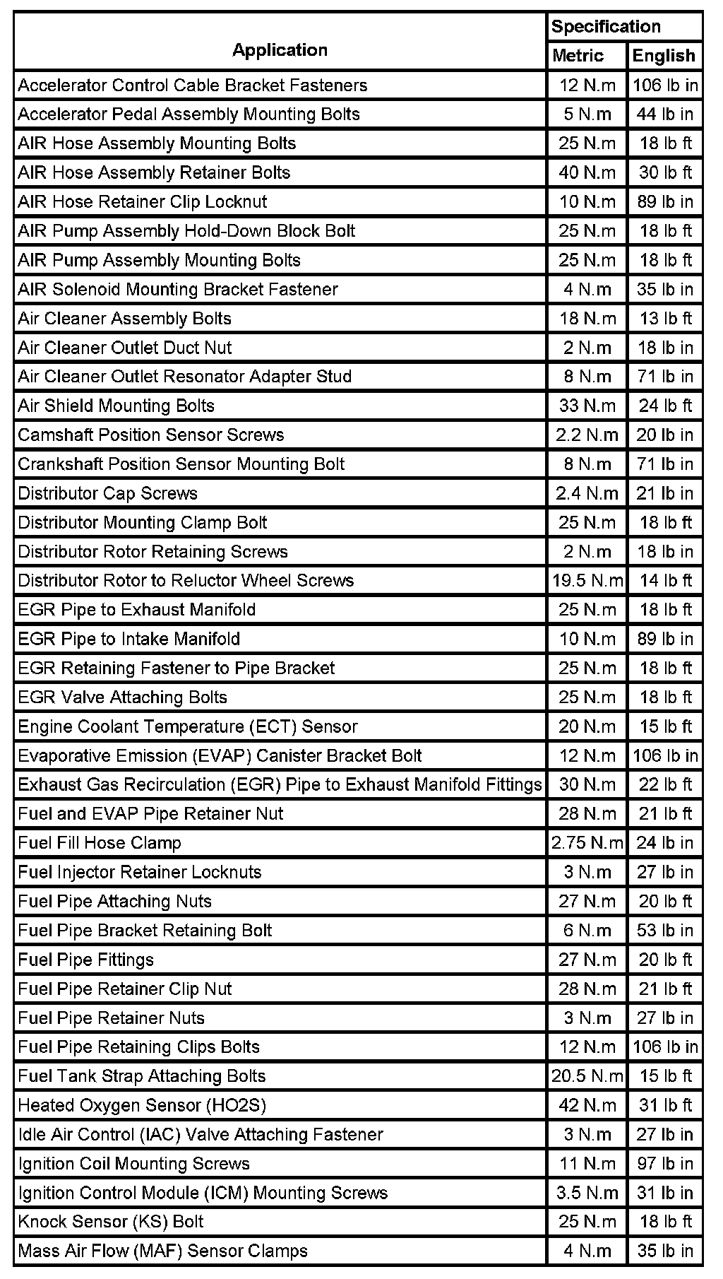 Fastener Tightening Specifications