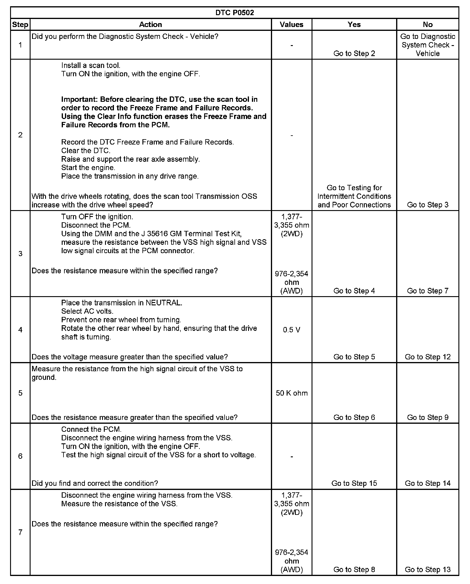 DTC P0502 Vehicle Speed Sensor (VSS) Circuit Low Voltage