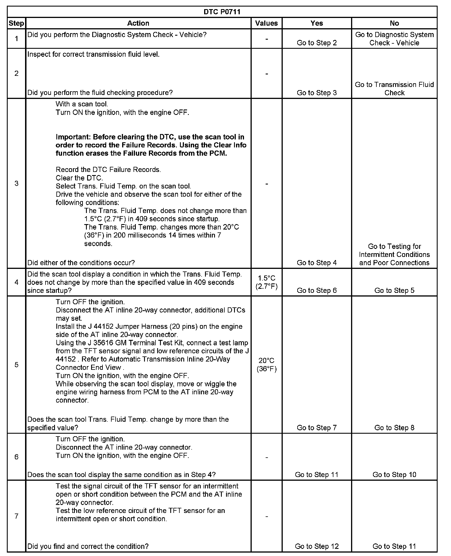 When the PCM detects one of the following unusual conditions, then DTC P0711 sets.