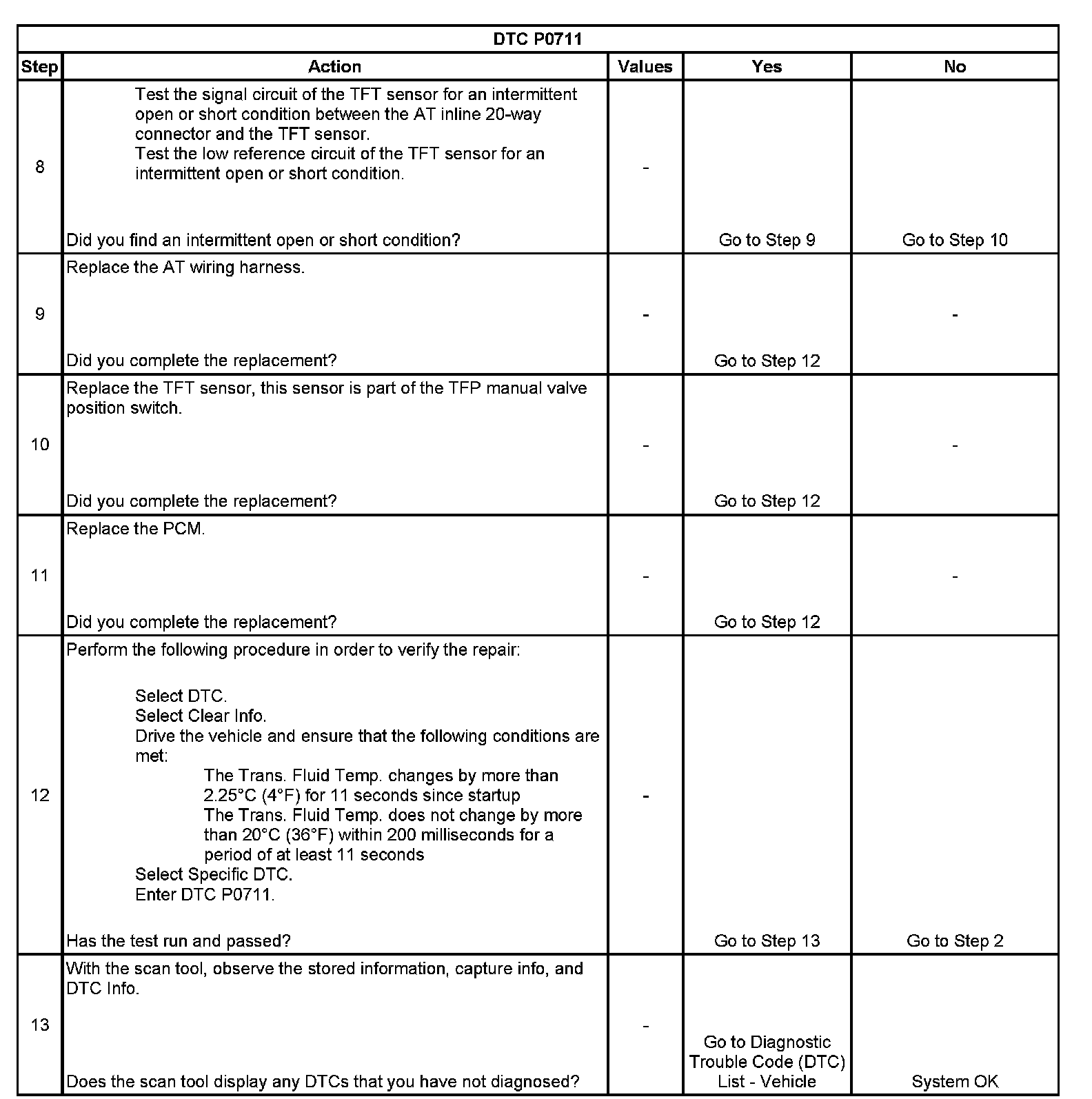DTC P0711 Transmission Fluid Temperature (TFT) Sensor Performance