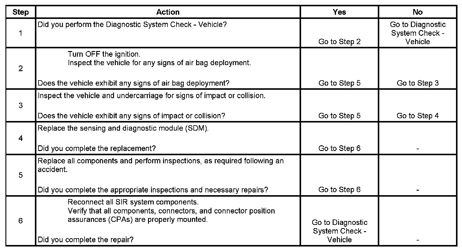 Ignition voltage must be present and the SDM must have commanded an air bag deployment with loop faults.