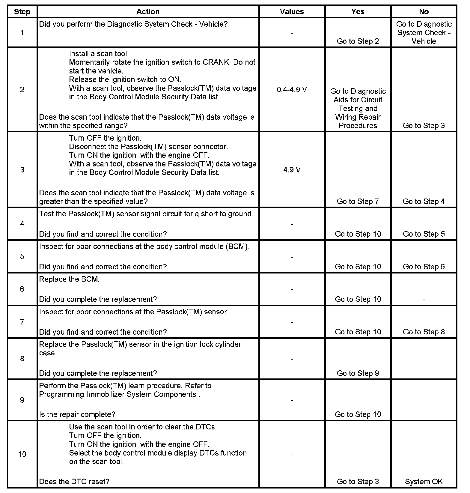 * Use a scan tool in order to inspect the Passlock(TM) data voltage and the Passlock(TM) code.