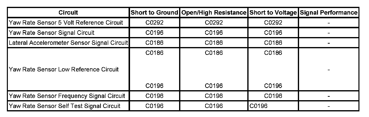 ^ The EBCM detects that the yaw rate sensor frequency signal is not within the valid range.