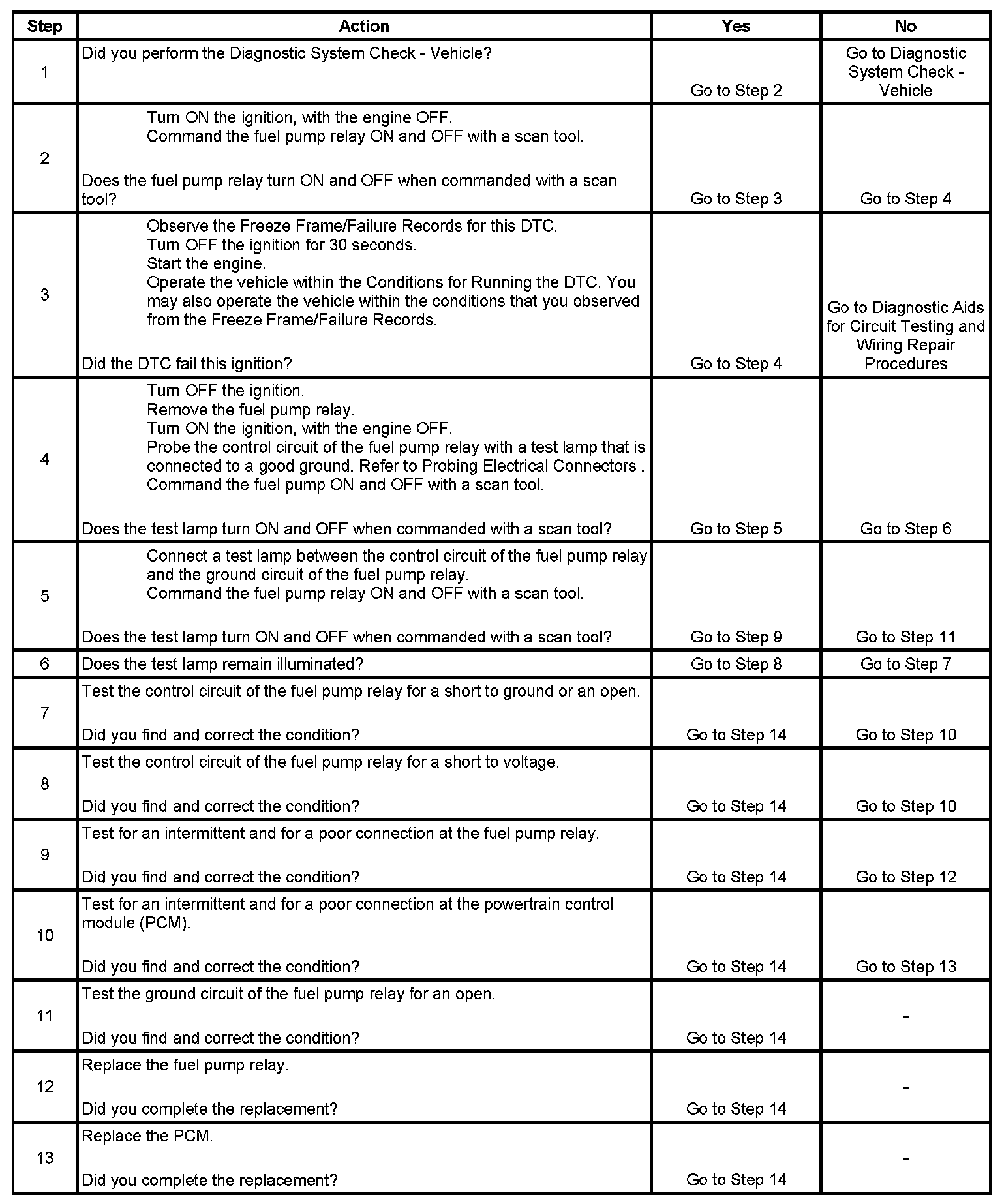DTC P0230 Fuel Pump Relay Control Circuit