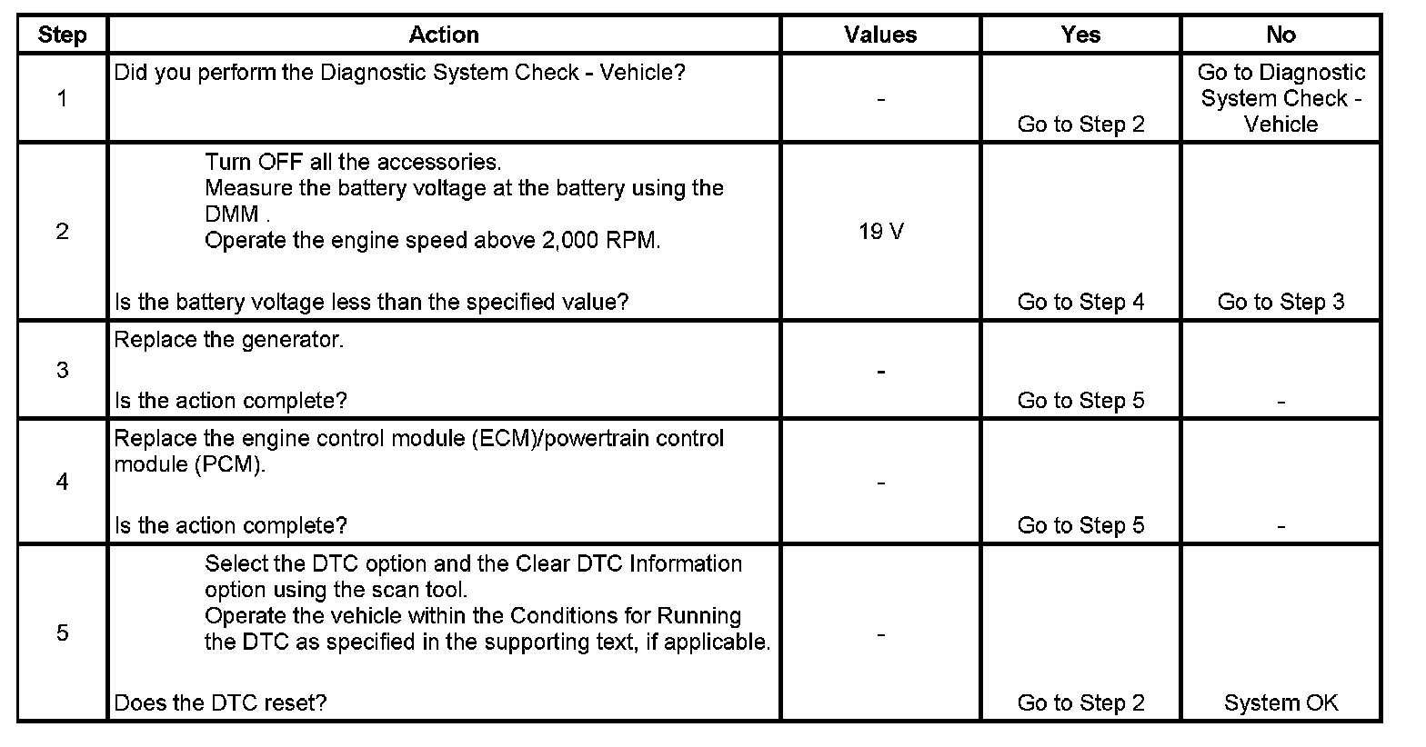 * The ECM/PCM senses the system voltage is above 19 volts.