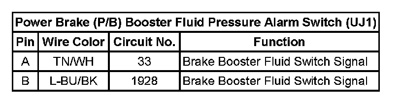 Power Brake (P/B) Booster Fluid Pressure Alarm Switch (UJ1):
