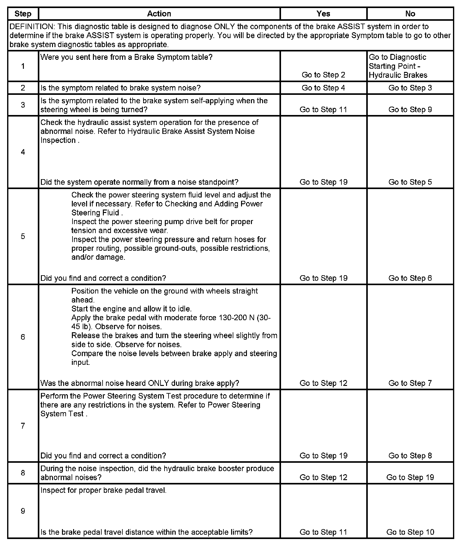 Brake Assist System Diagnosis