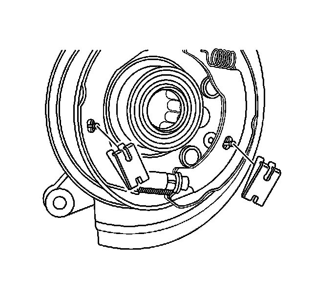 2. Install the brake shoe adjuster and the adjuster to the park brake shoes.