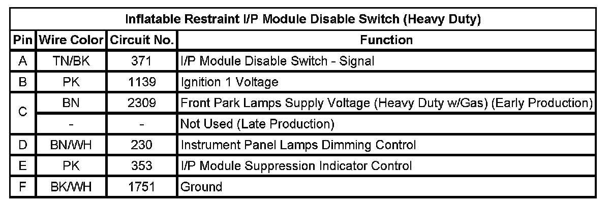 Inflatable Restraint I/P Module Disable Switch (Heavy Duty)