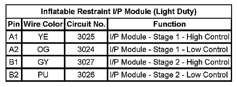 Inflatable Restraint PASSENGER AIR BAG ON/OFF Indicator (Light Duty w/o YF7)