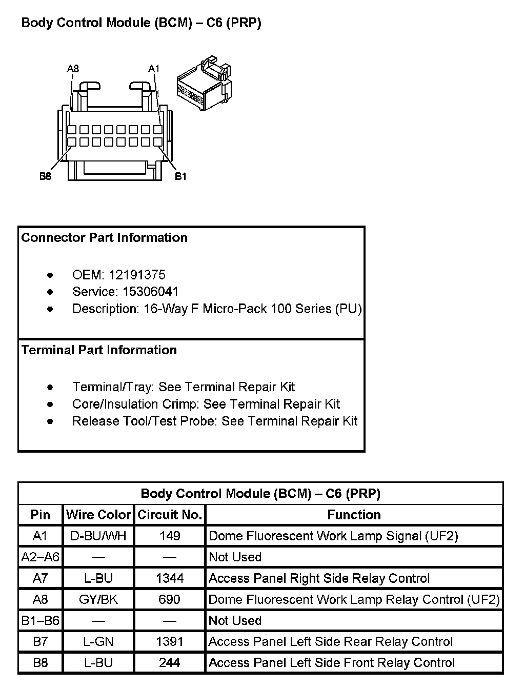 Body Control Module (BCM) - C6 (With RPO Code PRP)