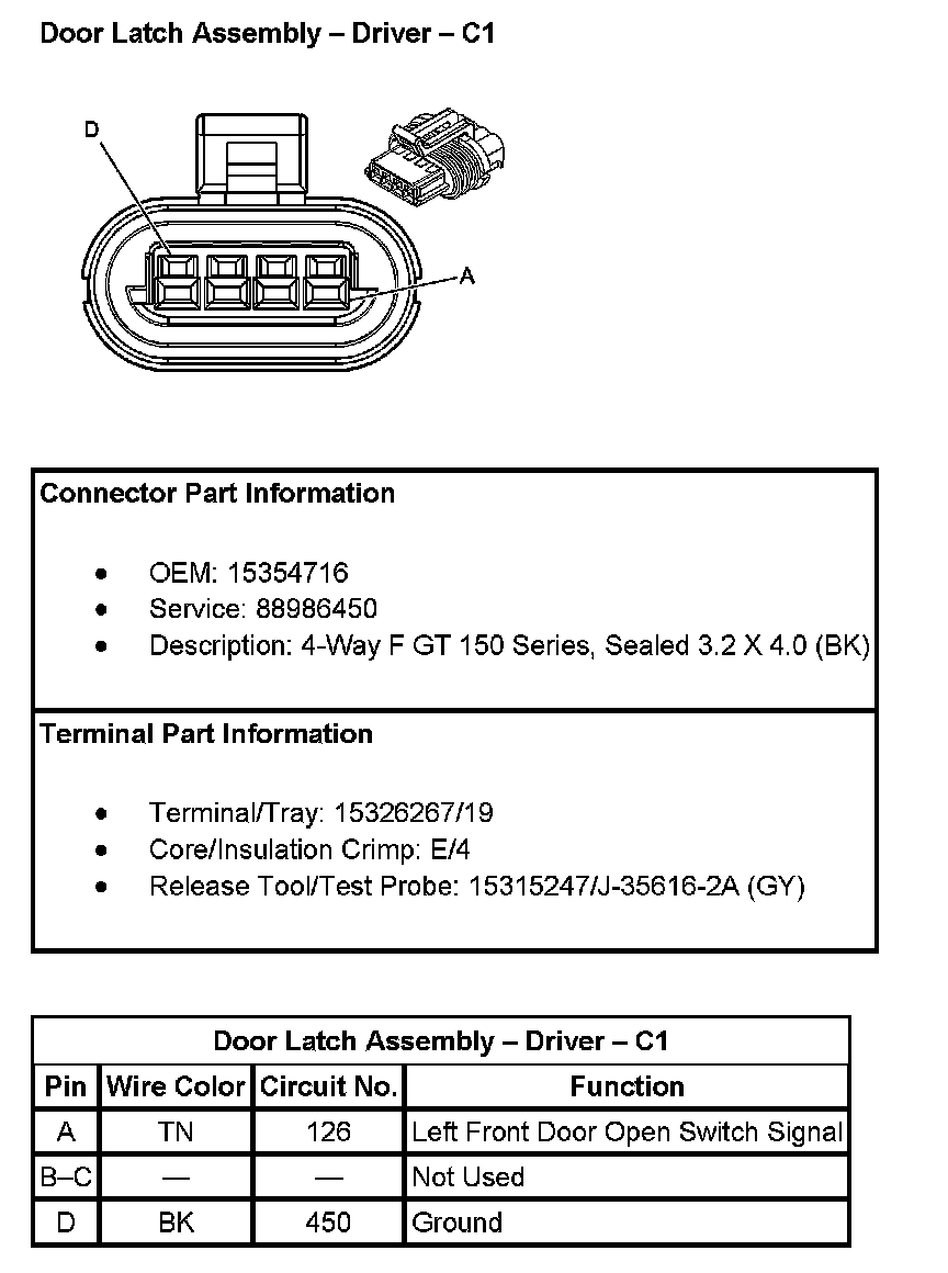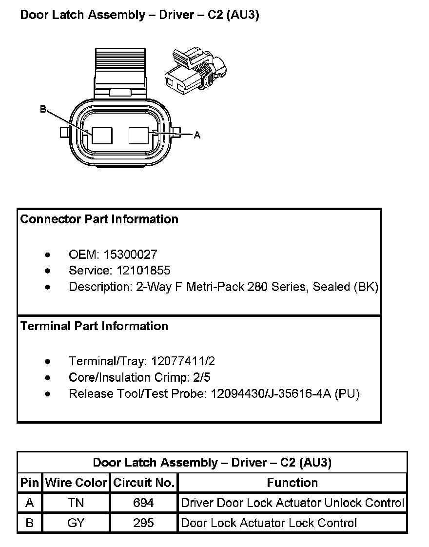 Door Latch Assembly - Driver - C2 (With RPO Code AU3):