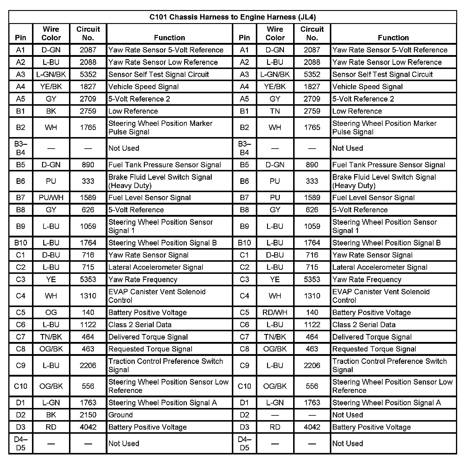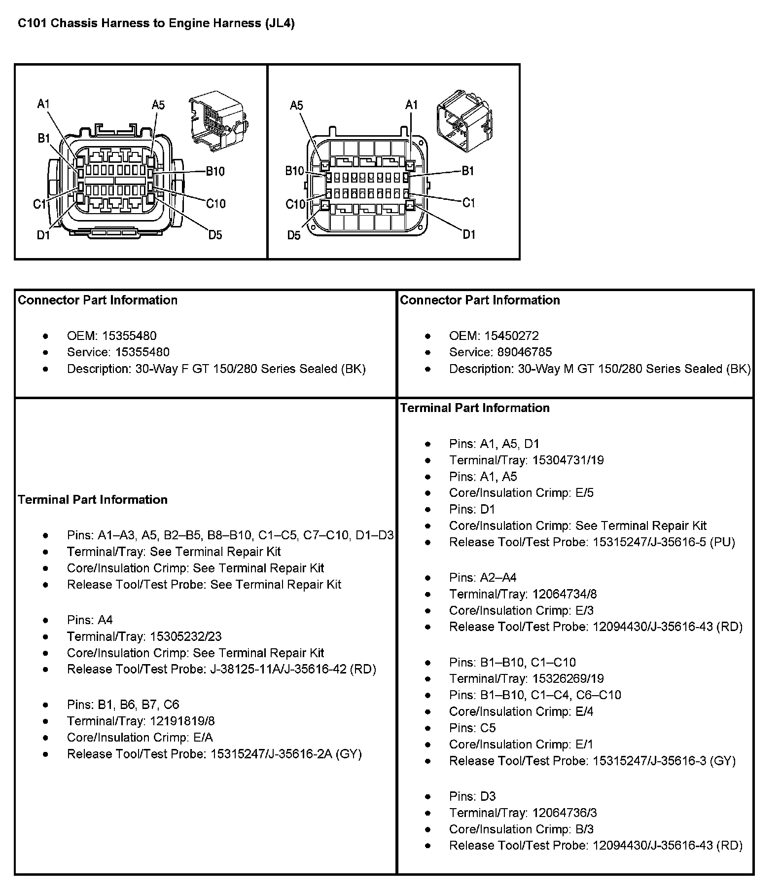 C101 Chassis Harness To Engine Harness (With RPO Code JL4):