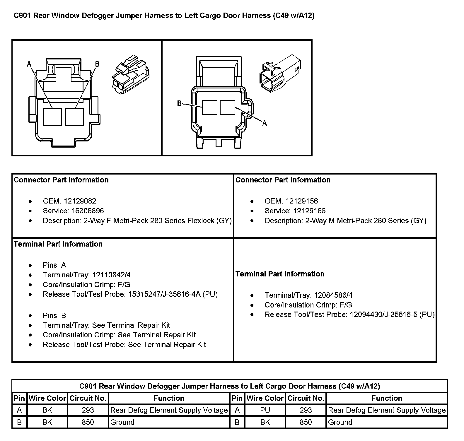 C901 Rear Window Defogger Jumper Harness To Left Cargo Door Harness (C49 W/A12):