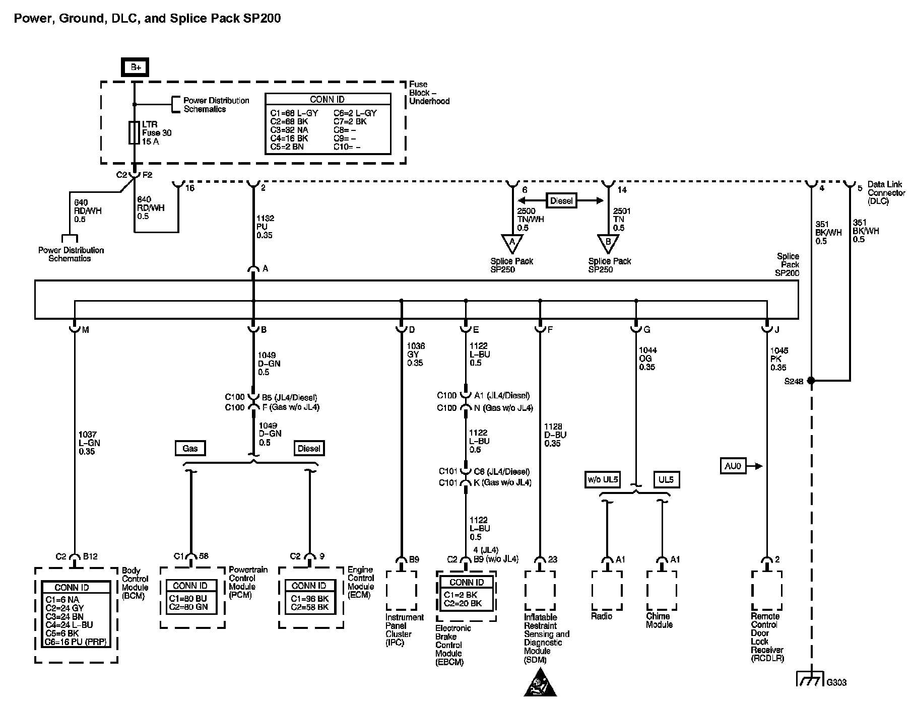 Locations: The locations for the Connectors, Grounds, Splices, and Grommets shown within these diagrams can be found via their numbers at Vehicle Locations. Locations
