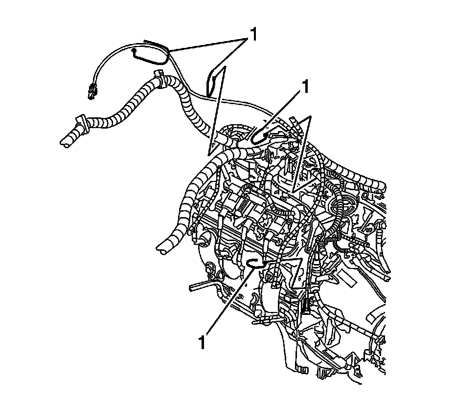 3. Remove the coolant heater cord retainers (1).
