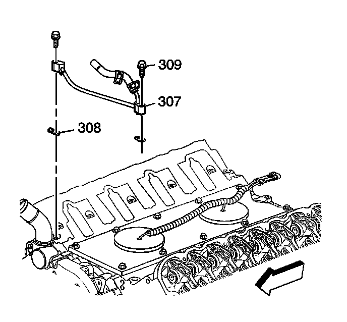 1. Remove the engine coolant air bleed pipe bolts (309).