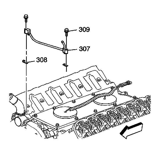 1. Install the pipe (307) and seals (308) onto the cylinder heads.