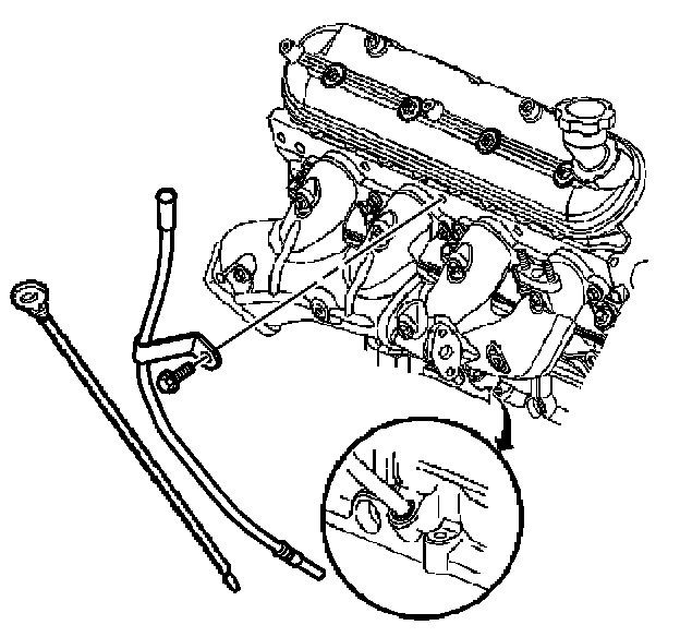 4. Install the oil level indicator tube into the engine block and rotate into proper position.