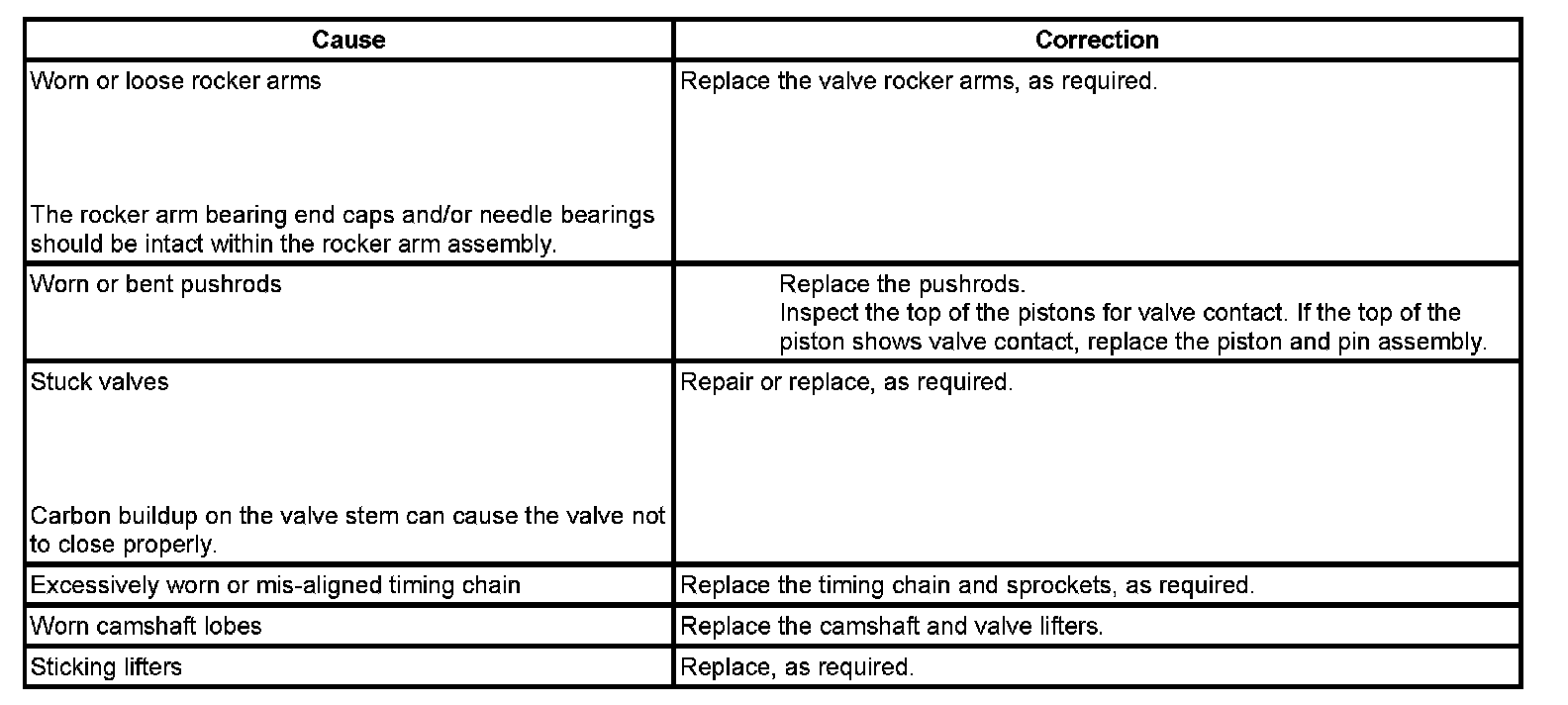 Base Engine Misfire with Abnormal Valve Train Noise: