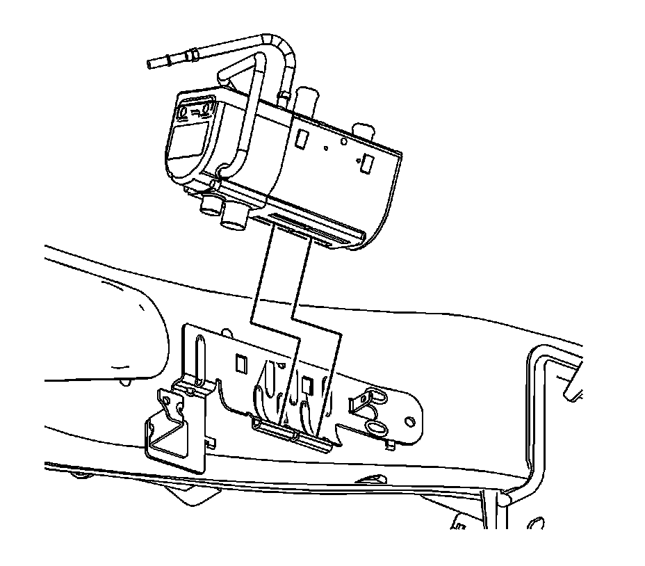 10. Remove the heater coolant heater from the bracket.