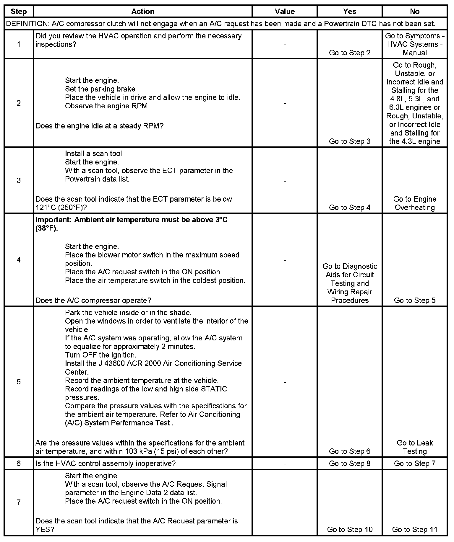 3. The A/C compressor relay output is disabled if the engine coolant temperature is above 121°C (250°F).