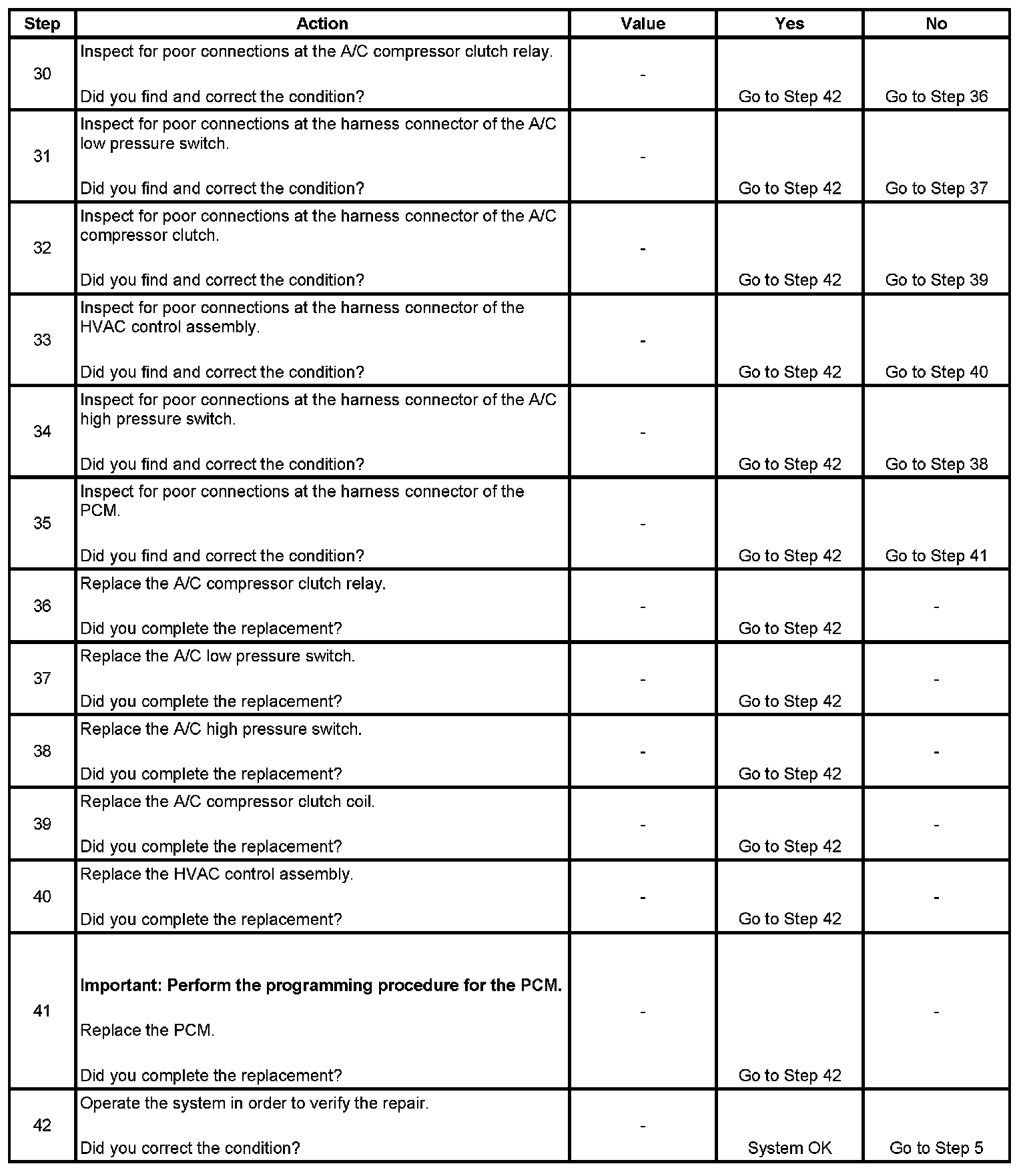 The numbers below refer to the step numbers on the diagnostic table.