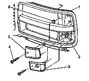 1. Remove the screw (4) that retains the side marker or the reflector to the grille.