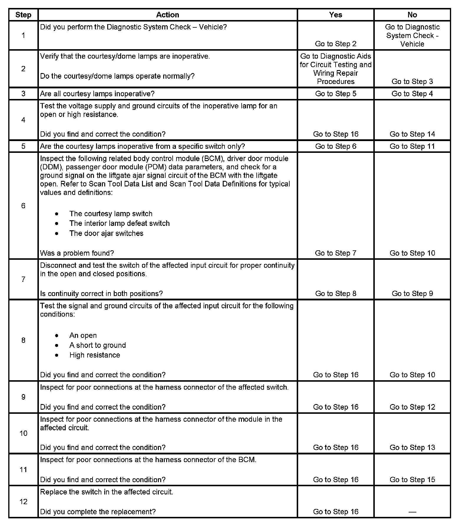 Courtesy Lamps Inoperative