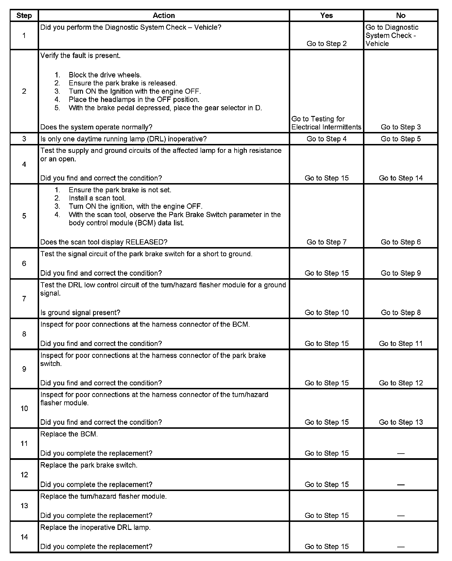 Daytime Running Lamps (DRL) Inoperative