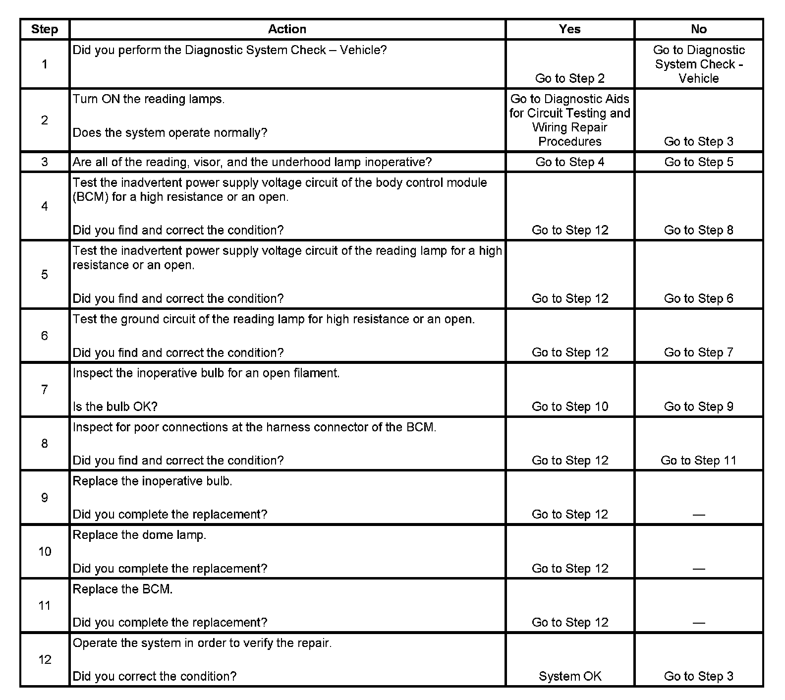 Reading Lamp(s) Inoperative