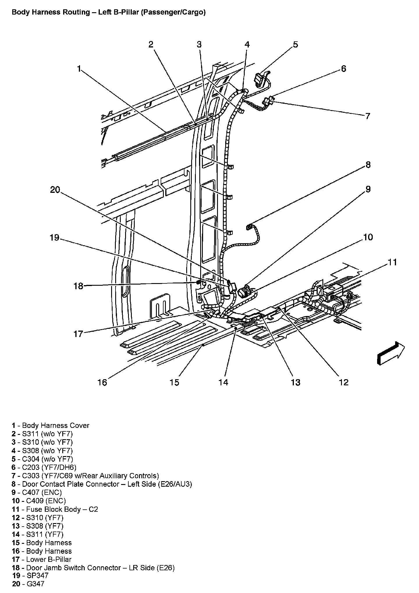 Body Harness Routing - Left B-Pillar (Passenger/Cargo):