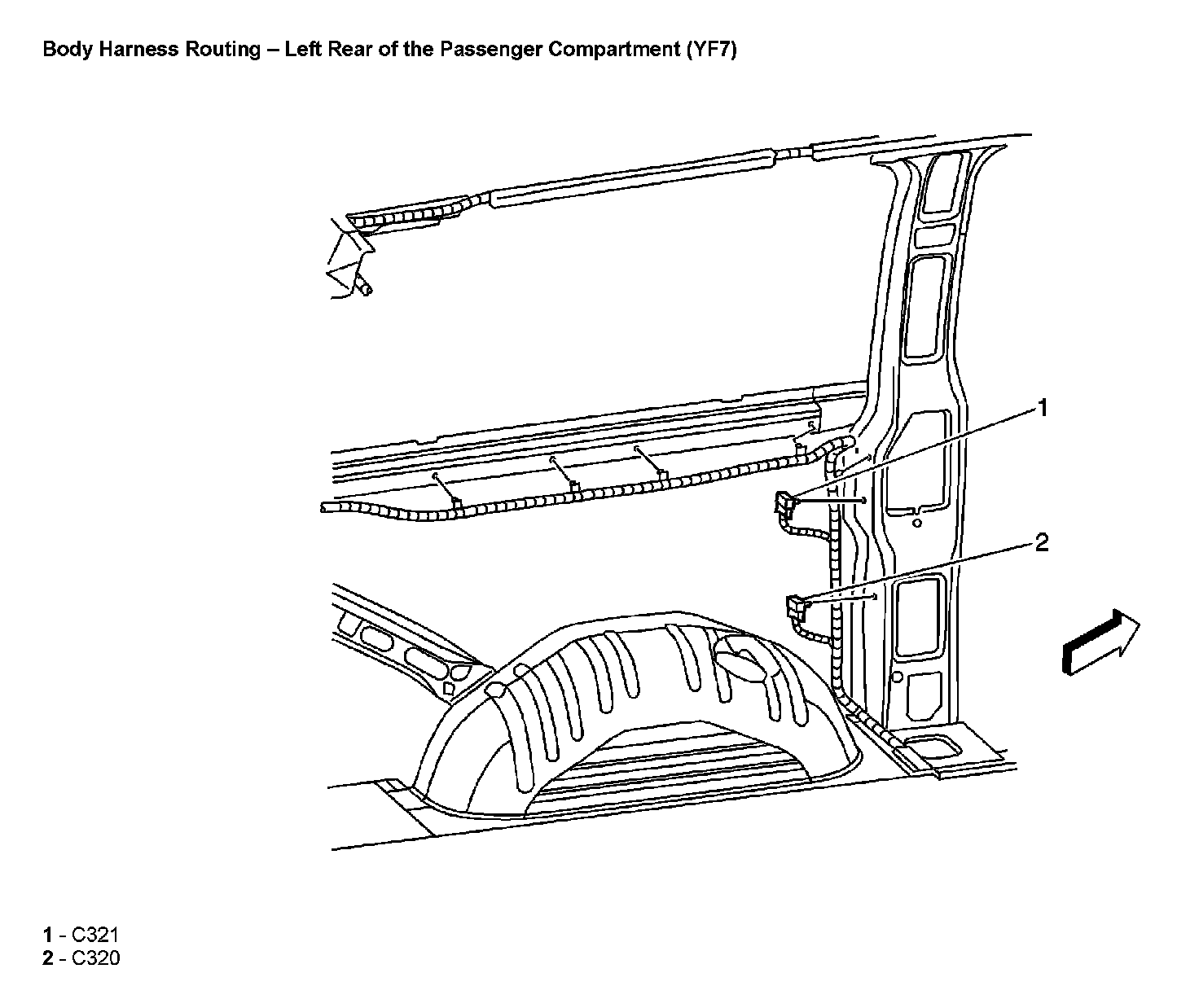 Body Harness Routing - Left Rear of the Passenger Compartment (With RPO Code YF7)