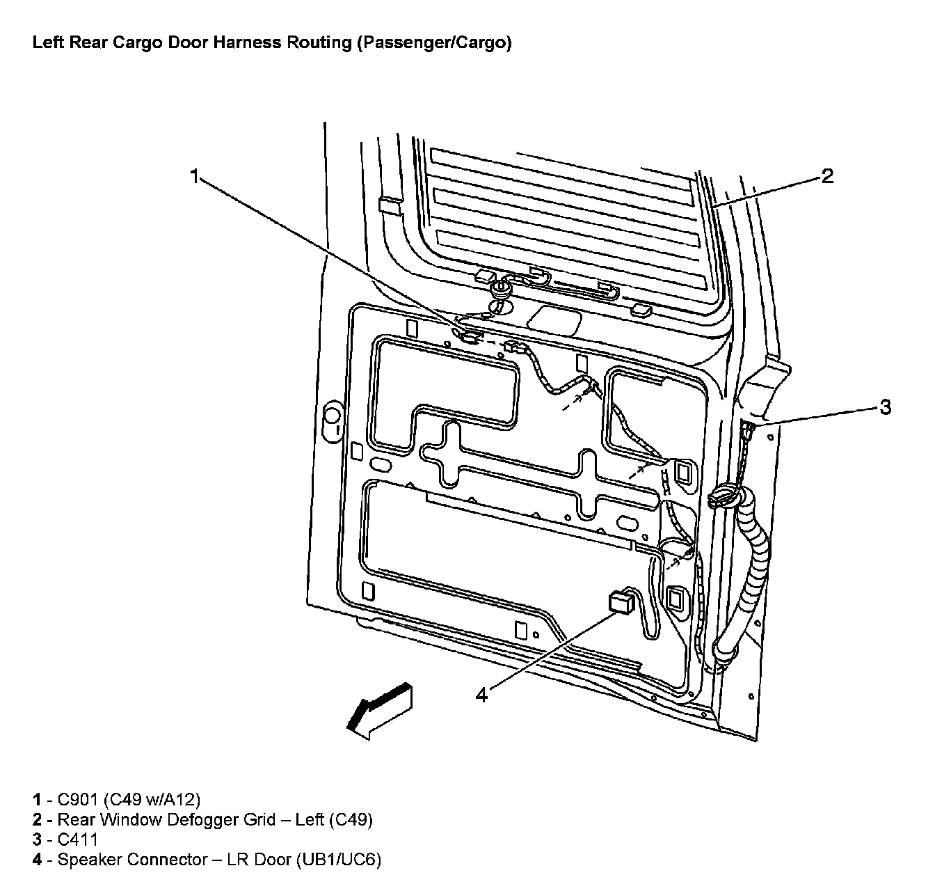 Left Rear Cargo Door Harness Routing (Passenger/Cargo)