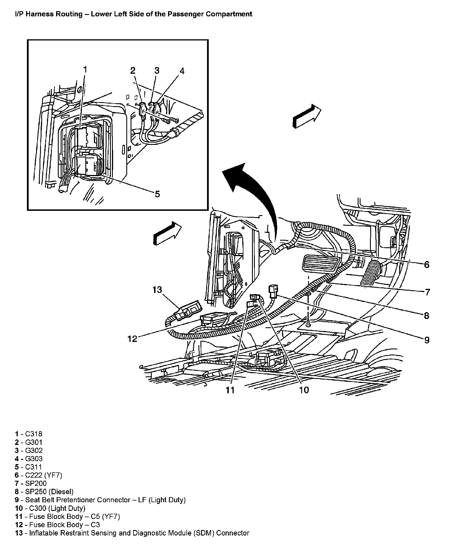 I/P Harness Routing - Lower Left Side Of The Passenger Compartment: