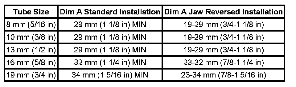 Minimum Tube Length Required Table