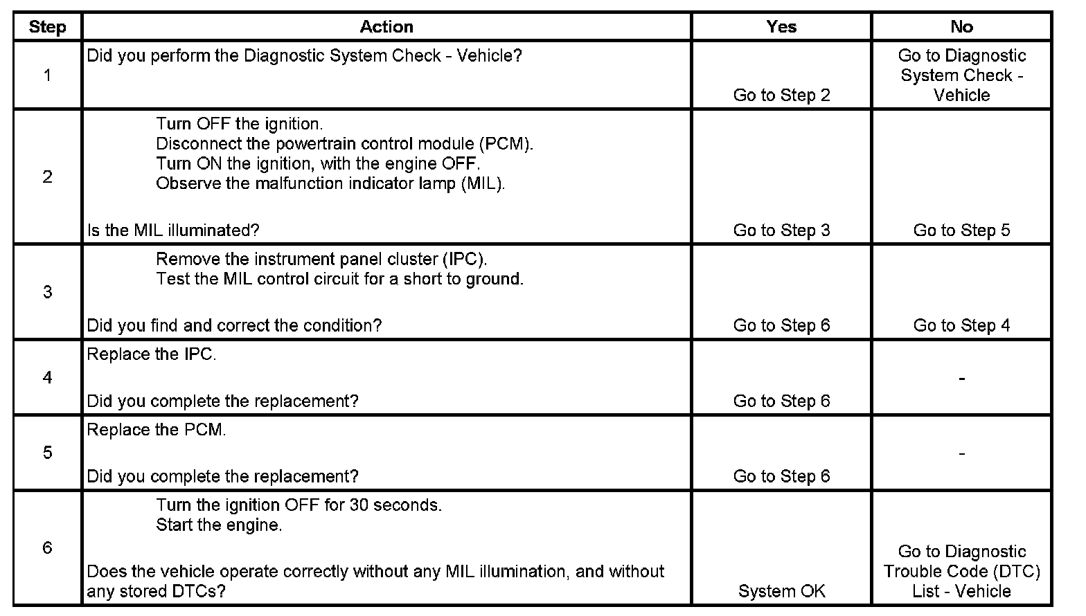 2. This step determines if the condition is with the MIL control circuit or the PCM.