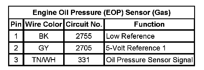 Engine Oil Pressure (EOP) Sensor (Gas)