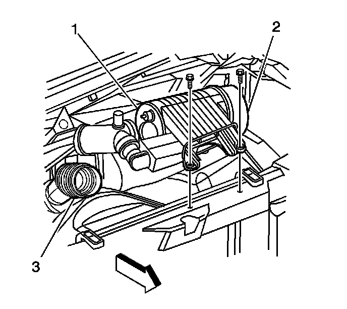 1. Loosen the clamp and separate the air cleaner resonator outlet duct (1) from the mass air flow/intake air temperature (MAF/IAT) sensor assembly.