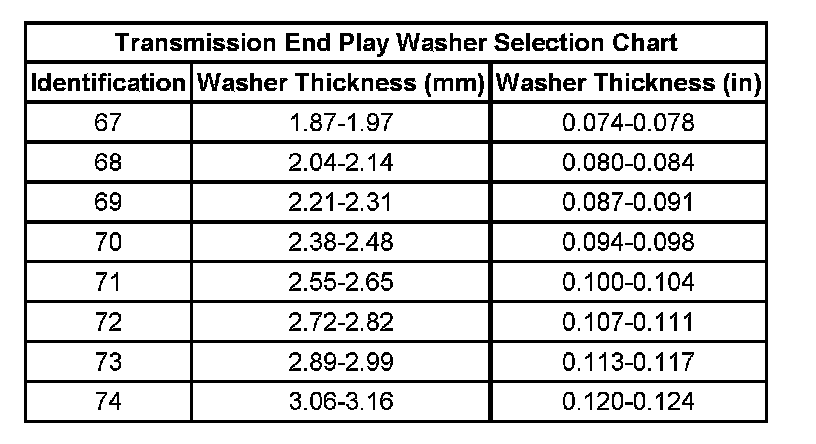 Transmission End Play Washer Selection Chart: