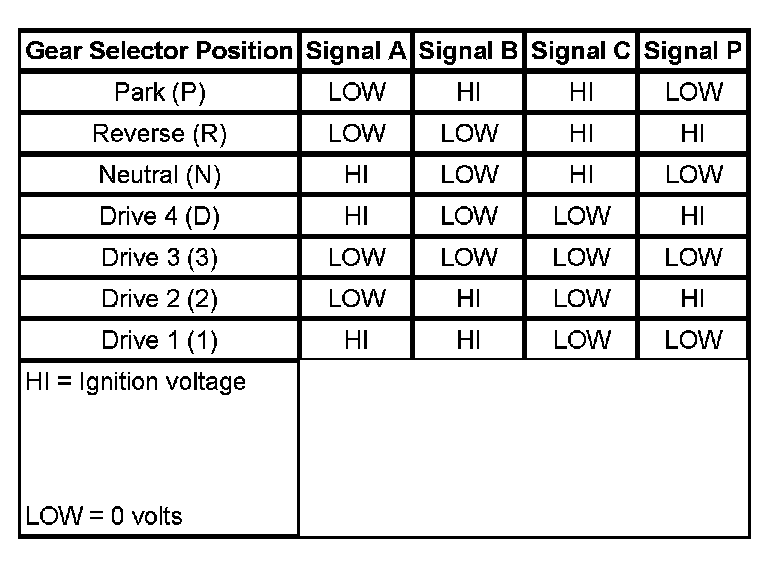 Transmission Range Switch Logic: