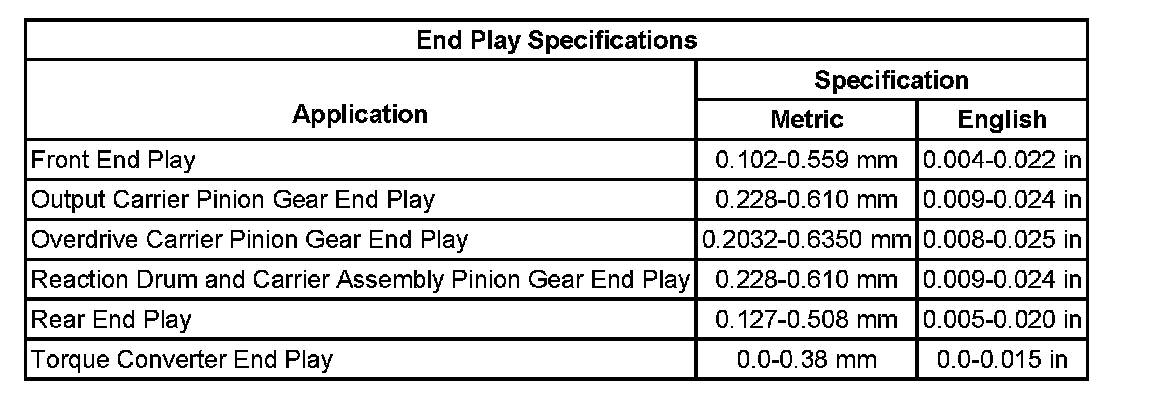 End Play Specifications: