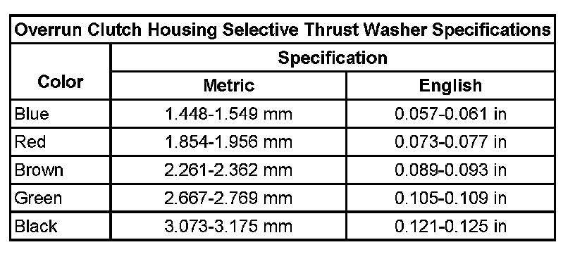 Overrun Clutch Housing Selective Thrust Washer Specifications: