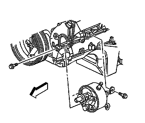 12. Remove the rear power steering pump mounting bolt.