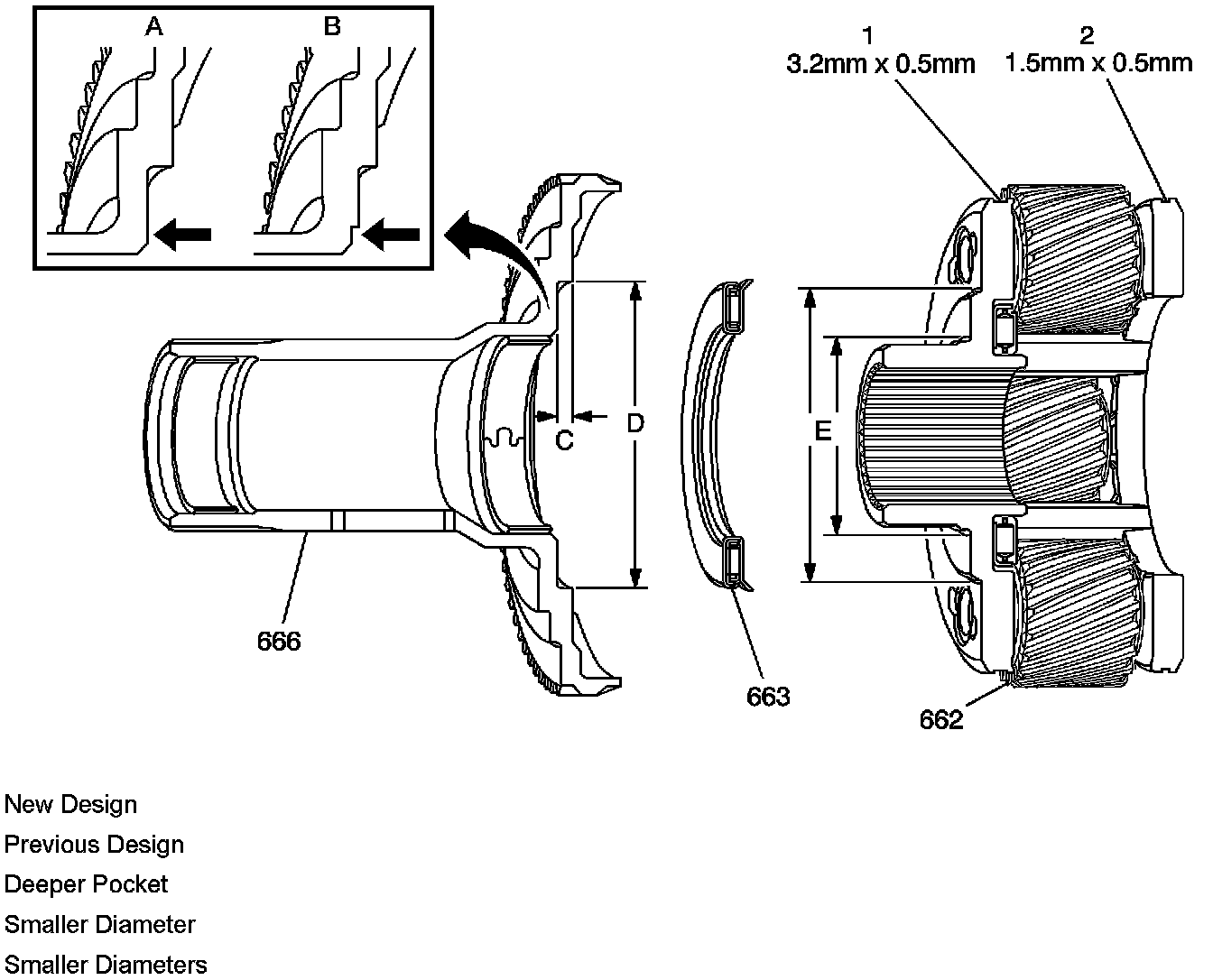 If the old design reaction carrier shaft or input carrier assembly need to be replaced, the new design parts will need to be used. All three parts will back fit past models.