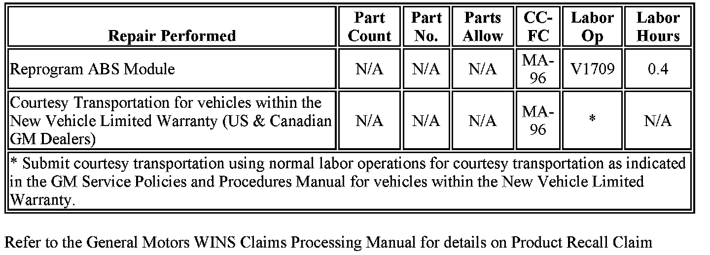 Refer to General Motors WINS Claims Processing Manual for details on production Recall Claim Submission.