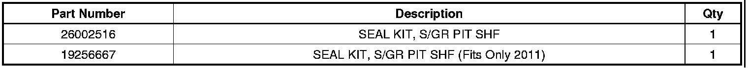 The seal package is cataloged in Group 06.855 as Seal Kit - GM Part Number 26002516 - Steering Gear Pitman Shaft, which includes the seal, washer, retaining ring and dust seal or G/M P/N 19256667, which includes the seal and retainer. Refer to Steering Gear Pitman Shaft Seal in SI.